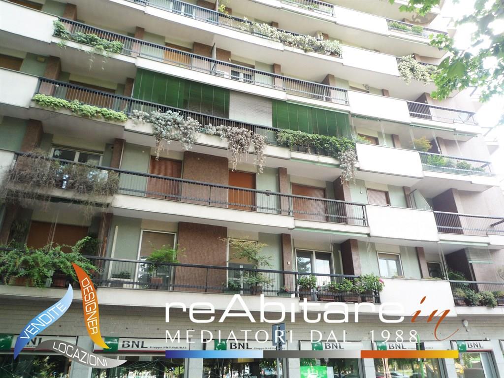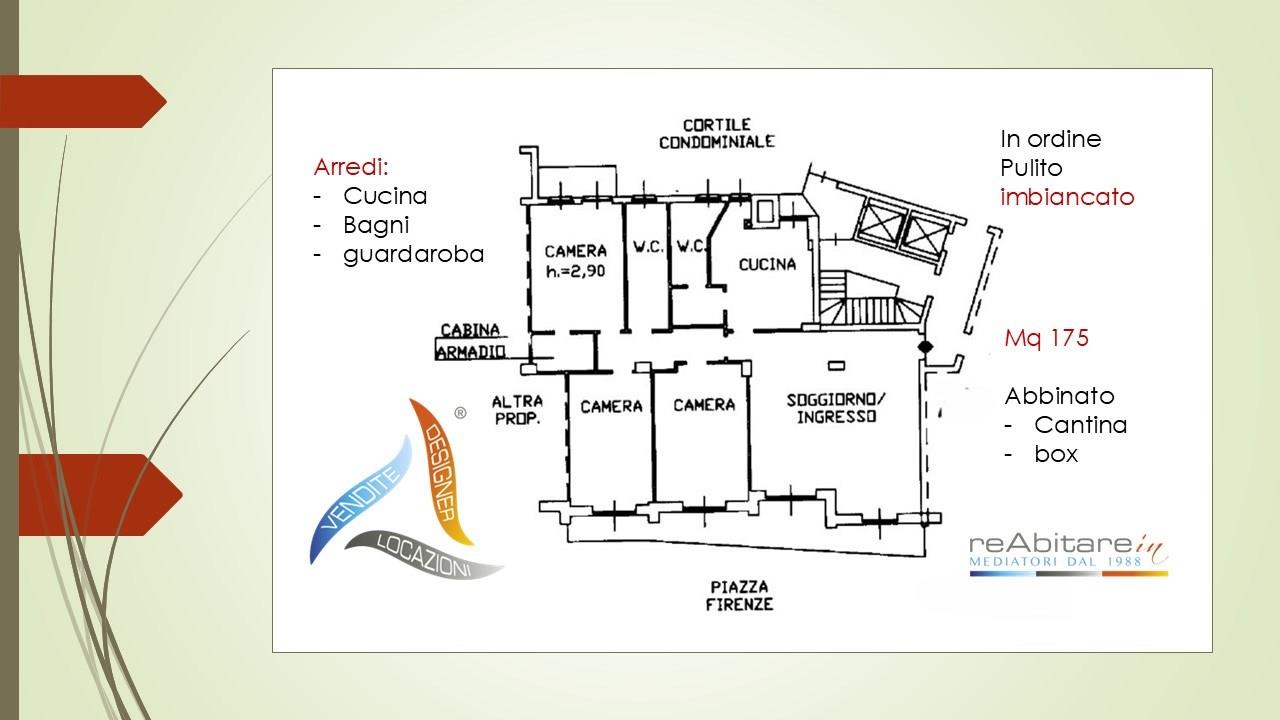 Proponiamo in locazione un quadrilocale di ampia metratura, perfetto per chi cerca una dimora funzionale. La soluzione si distingue per la razionale distribuzione degli spazi: l'ingresso, arricchito da arredi su misura, si apre su un luminoso soggiorno doppio che domina la piazza. La cucina abitabile, già arredata, è servita da un balcone di servizio con ingresso secondario e da un primo bagno con lavanderia. La zona notte dispone di due camere ampie con affaccio sulla balconata terrazzata, un secondo bagno padronale con vasca e doccia, e una camera matrimoniale situata in posizione riservata con cabina armadio dedicata. Completano la proposta la cantina e l'autorimessa per un’auto di media cilindrata. Finiture in parquet, infissi nuovi e servizio di portineria garantiscono il massimo comfort. L'unità verrà consegnata pulita e integralmente imbiancata. Dettagli economici: Canone € 2.050/mese + € 300 spese condominiali. Disponibile da Marzo. Gradito contratto a società.